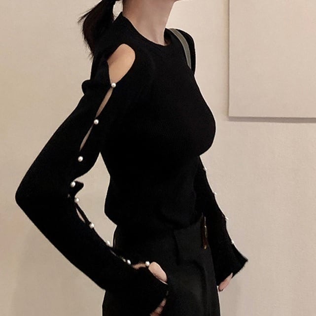 side pearl offshoulder tops <t1134>