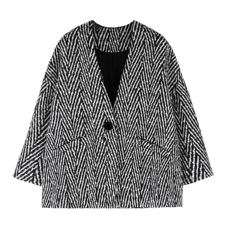 さらっと着こなせるシックな、ゼブラパターンジャケット。