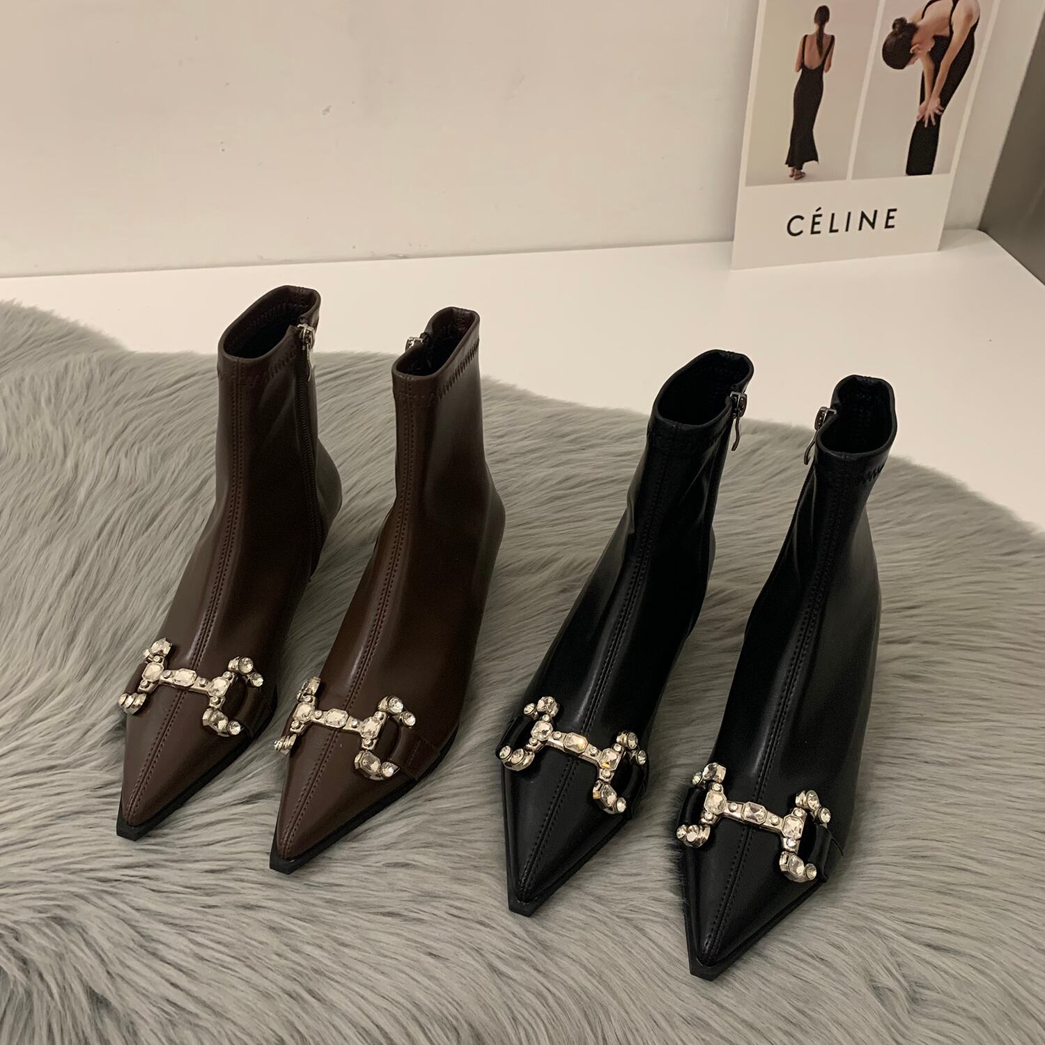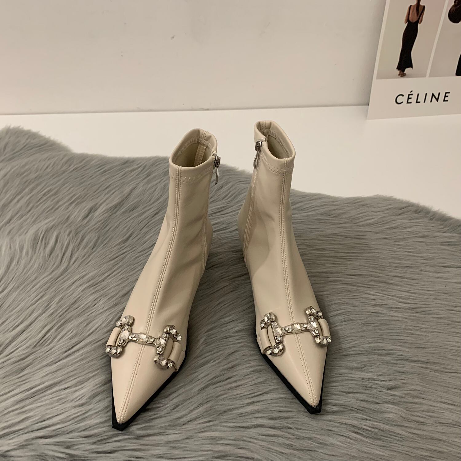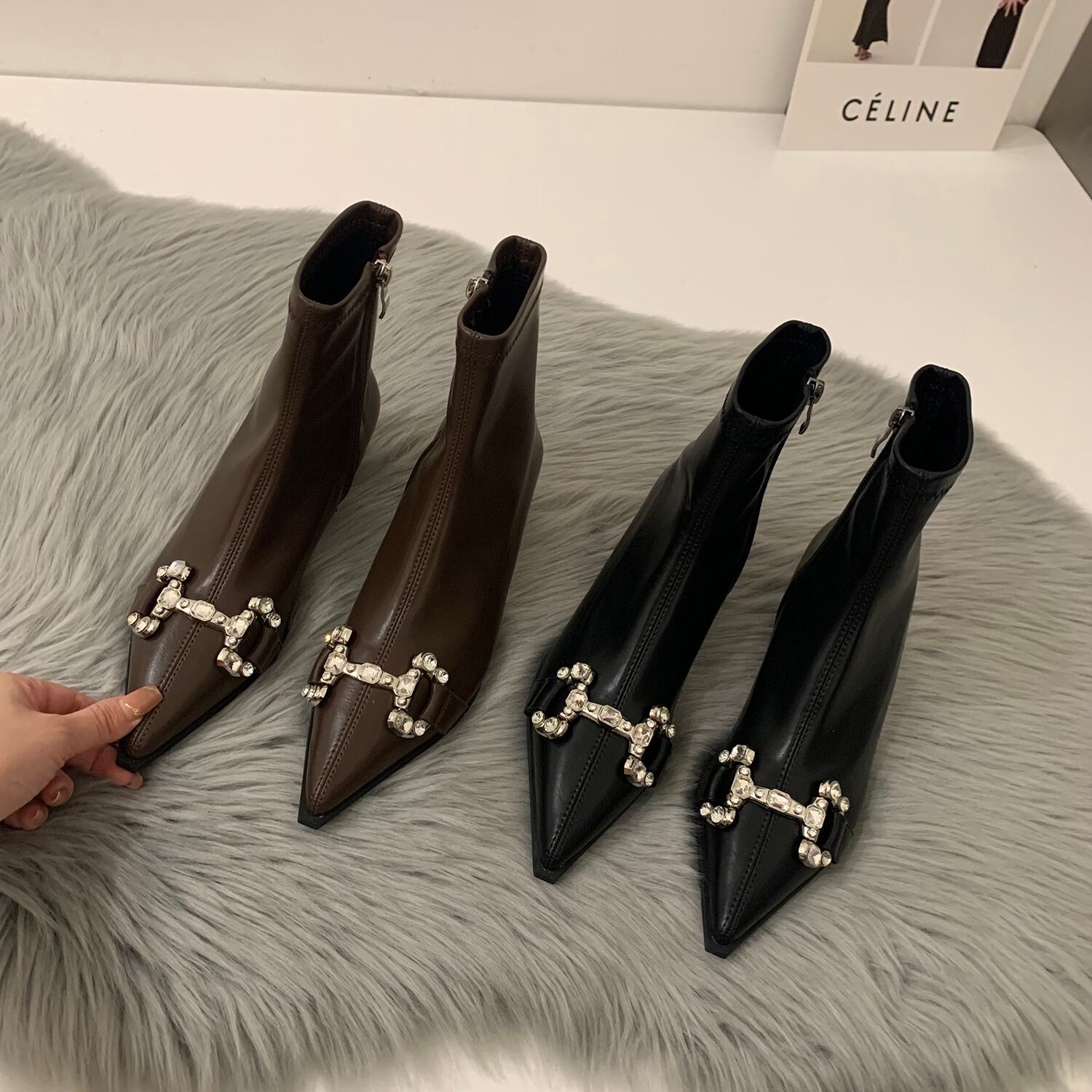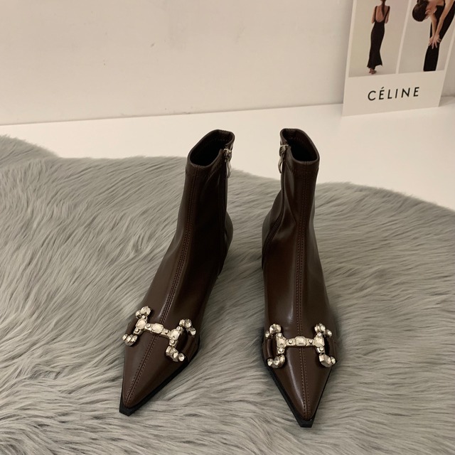 ビジューバックルバッグ ビジューバックルが華やかで上品なブーツ。 大人っぽいポインテッドトゥです。 ※オフホワイトは、実物は白に近いホワイトになります。 ◇商品詳細 【サイズ(cm)】 海外サイズ/cm 35/22.5 36/23 37/23.5 38/24 39/24.5 ※写真と異なり、インソールに海外販売先の印字がある場合があります 【カラー】 ブラック/オフホワイト 【素材】 PU 【お届けについて】 当ショップの商品は海外からの取り寄せ・発送となるため、ご入金から商品到着まで2週間~4週間のお届けになります。 ⭐︎新商品を続々入荷中です。 ぜひこちらからご覧ください→https://www.amor-alma.shop ◼️注意事項 ・タイミングによっては 商品在庫切れにより 注文キャンセルとさせていただく恐れもございますので、予めご了承くださいませ。 ・こちらは輸入品となります。日本製とは検品基準が異なる為、 新品未使用品でもごくわずかな汚れや傷がある場合もございます。 ・商品の色味は、お手持ちのスマートフォンの画面によって実物と若干異なる場合がございます。 ・イメージ違いやサイズ交換等、お客さまご都合による交換、返品は対応出来かねます。 ・こちらは海外発送のため、靴のサイズ交換は行っておりません。購入後に破損したときの修理や部品の提供や交換は行っておりませんので、あらかじめご了承のもとお買い求めください。サイズに迷われたら、大きめサイズを選ばれることをおすすめいたします。 【お支払い方法】 以下の各種お支払い方法をお選びいただけます。 ・BASEかんたん決済 ・クレジットカード決済(VISA/Master/JCB/AMERICAN EXPRESS) ・キャリア決済 ・銀行振込 ・コンビニ決済・Pay-easy ———————————— ご購入前にこちらをお読みください →https://www.amor-alma.shop/about ———————————— 管理番号:s1288 ————————————