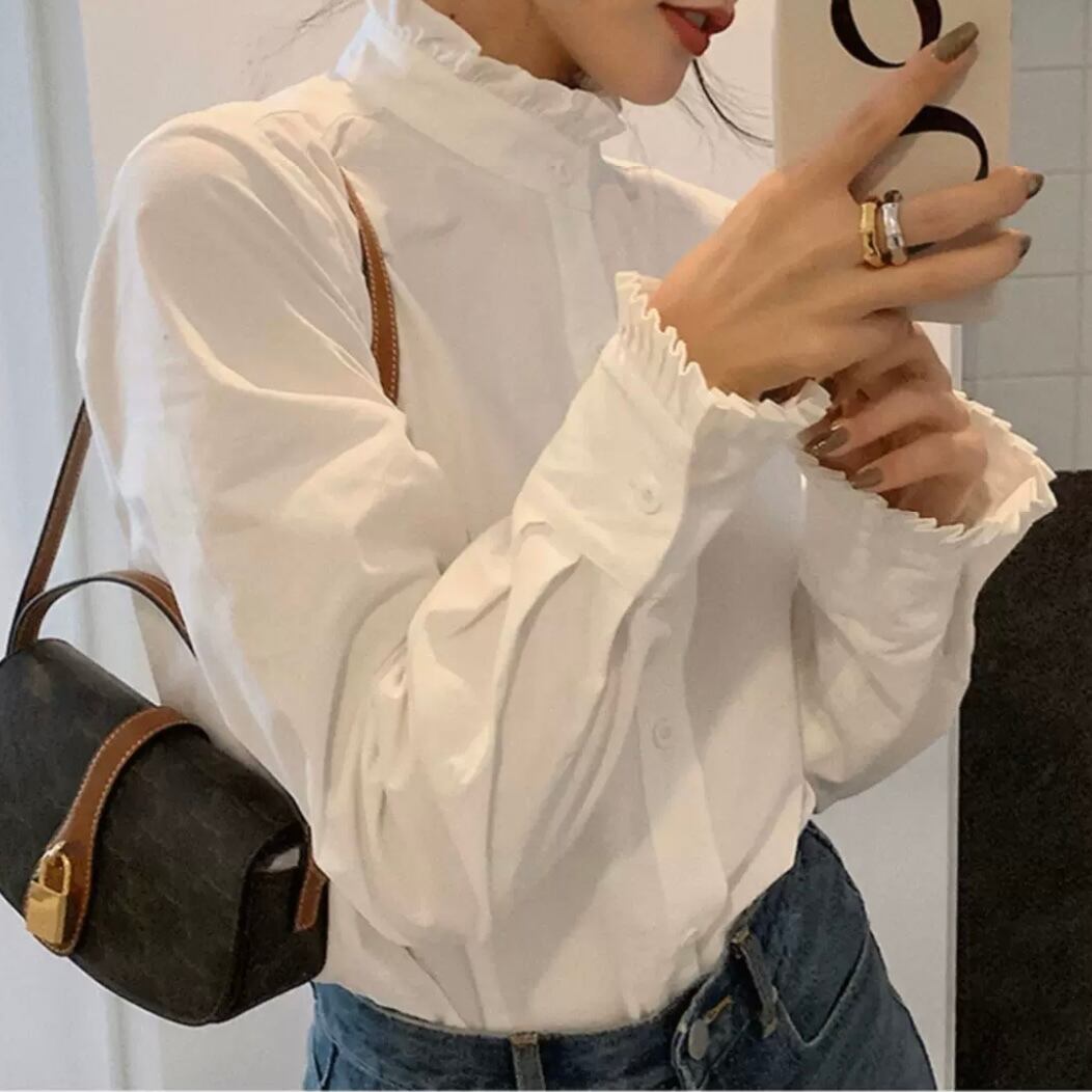 クラシカルな雰囲気のフレンチカラーブラウス。