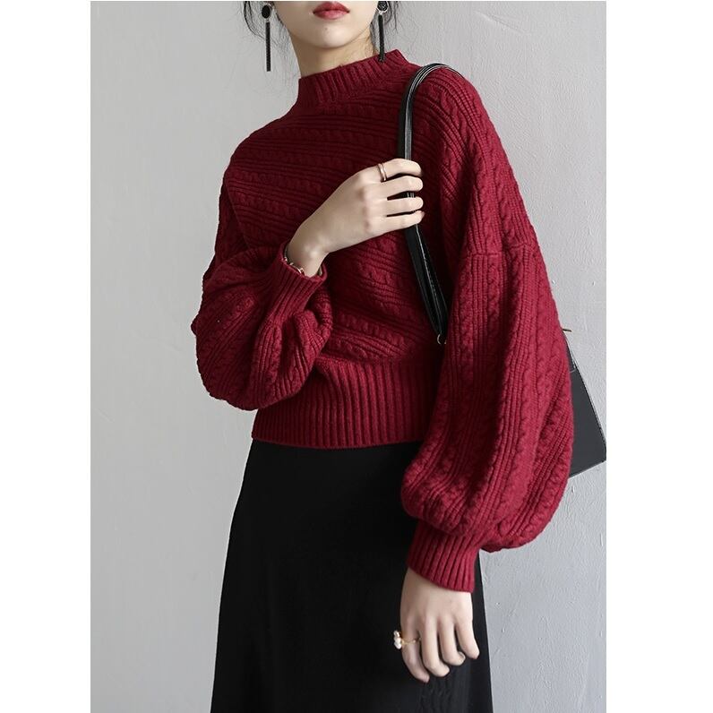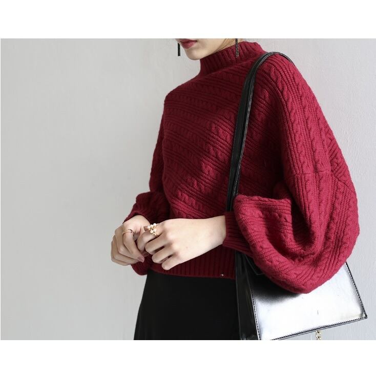 ふんわりとしたランタンスリーブが可愛いニットトップス。