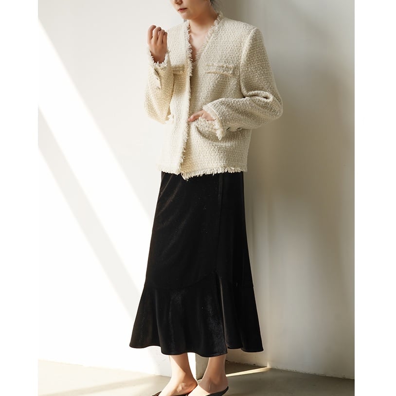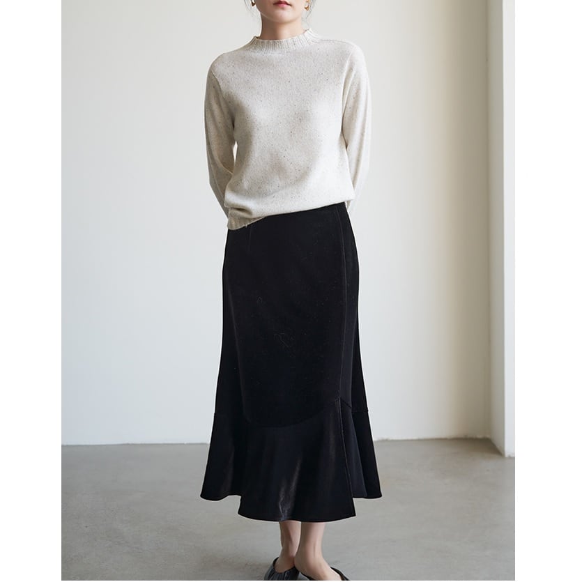 シーズンムードを高めてくれるベルベット素材のスカート。