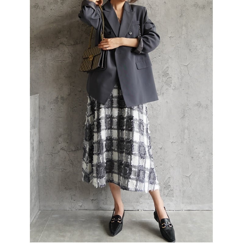 モノトーンでシックに仕上げたチェックスカート。