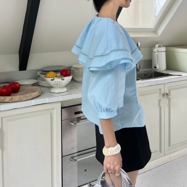 ※仕様変更により、長袖になり、フリルの仕様がお写真と異なります。最後の2枚が現在のデザインです。
