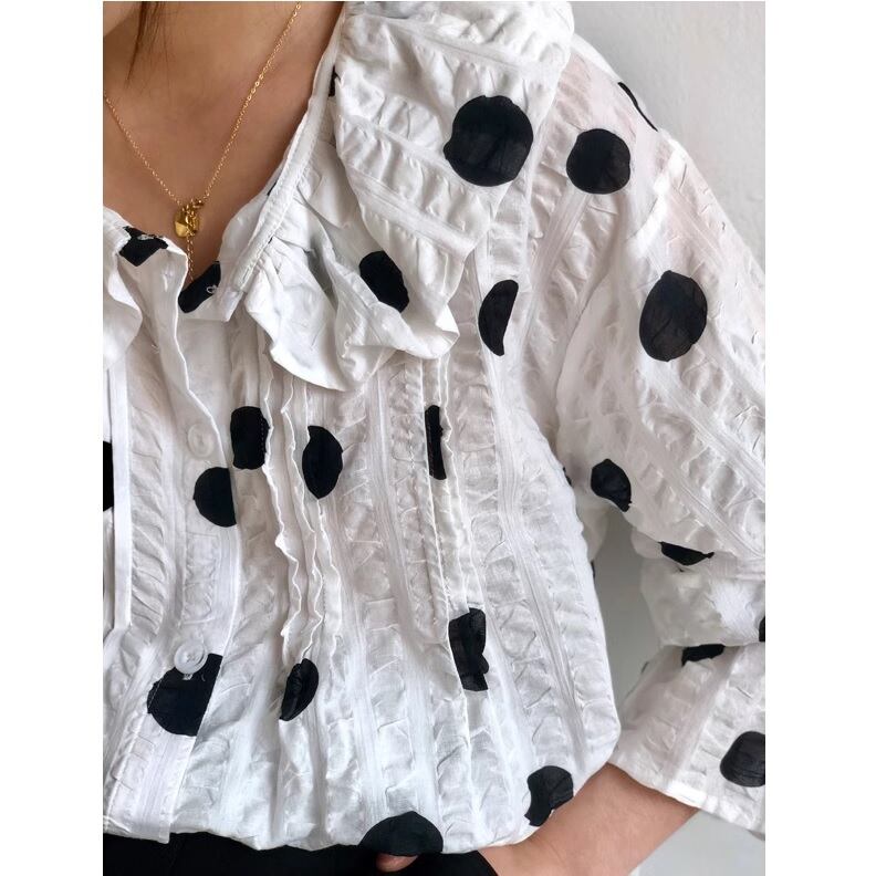 ドット柄に可愛らしいドールカラーが魅力的なブラウス。