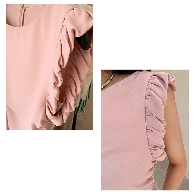 frill sleeve elegant dress<d1628>
