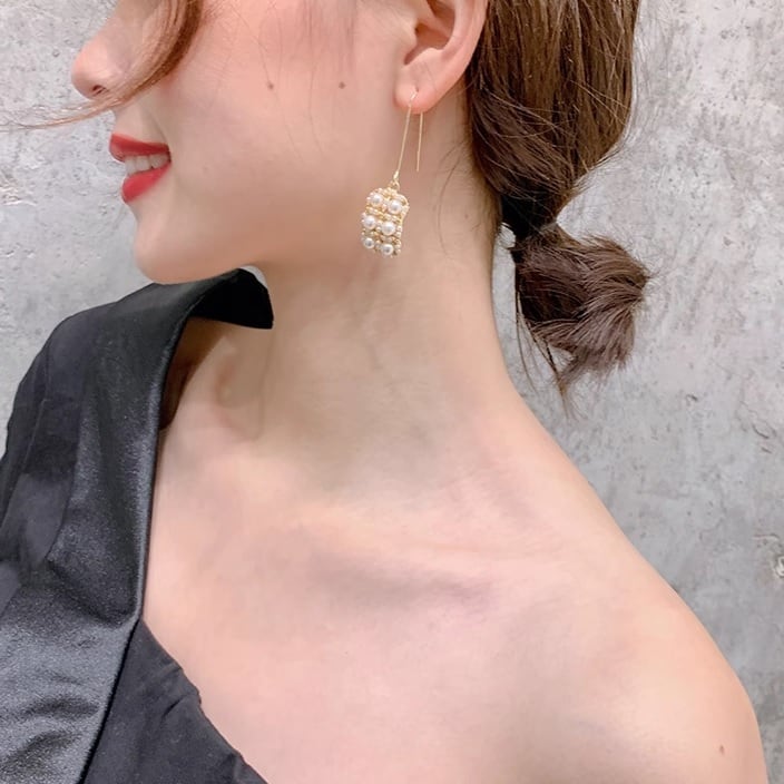 square pearl の上品なピアス。デイリーユースはもちろん、パーティーや結婚式にも。