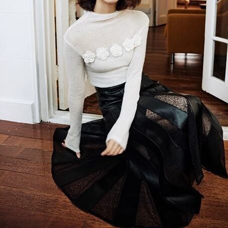 ロマンティックなwhite Camellia knit tops。