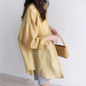 透け感のあるバックデザインがポイントのsheer back design shirt。 シンプルなデザインで、スタイリングに取り入れやすいのもポイントです。 ◇商品詳細 【サイズ(cm)】 S M L XL ※採寸方法により1-3cmの誤差がある場合がございます 【カラー】 ホワイト/イエロー/シーソルトブルー/ピーチ/パープル 【素材】 折りたたんで発送されるため、折ジワがある場合があります。ご了承のほどよろしくお願いいたします。 【注意点】※誠に恐れ入りますが、必ずこちらを承諾の上でご注文ください。 ご購入の際は、こちらを承諾したものとさせて頂きます。 【お届けについて】 当ショップの商品は海外からの取り寄せ・発送となるため、ご入金から商品到着まで2週間~4週間のお届けになります。 ◼️注意事項 ・タイミングによっては 商品在庫切れにより 注文キャンセルとさせていただく恐れもございますので、予めご了承くださいませ。 ・こちらは輸入品となります。日本製とは検品基準が異なる為、 新品未使用品でもごくわずかな汚れや傷がある場合もございます。 ・商品の色味は、お手持ちのスマートフォンの画面によって実物と若干異なる場合がございます。 ・イメージ違いやサイズ交換等、お客さまご都合による交換、返品は対応出来かねます。 【お支払い方法】 以下の各種お支払い方法をお選びいただけます。 ・BASEかんたん決済 ・クレジットカード決済(VISA/Master/JCB/AMERICAN EXPRESS) ・キャリア決済 ・銀行振込 ・コンビニ決済・Pay-easy ご購入前にこちらをお読みください →https://www.amor-alma.shop/about ———————————— 管理番号:t1927 ———————————