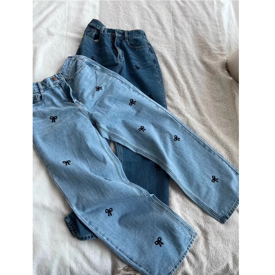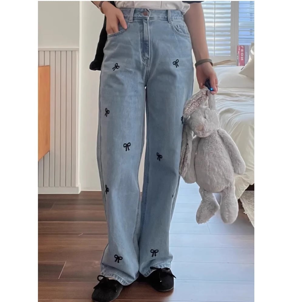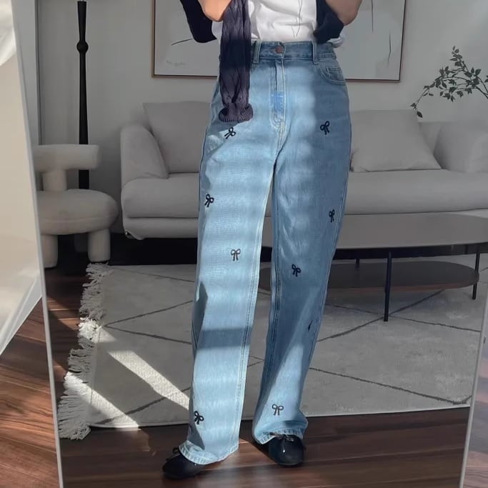 小さなリボンがポイントのデニムパンツ。