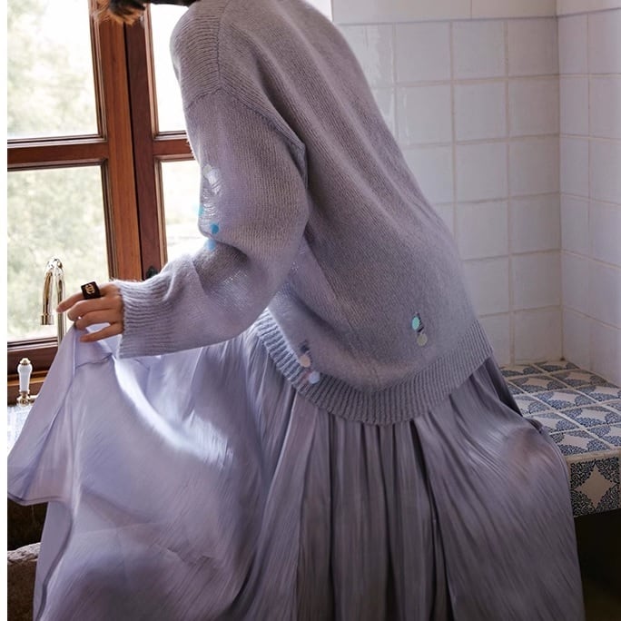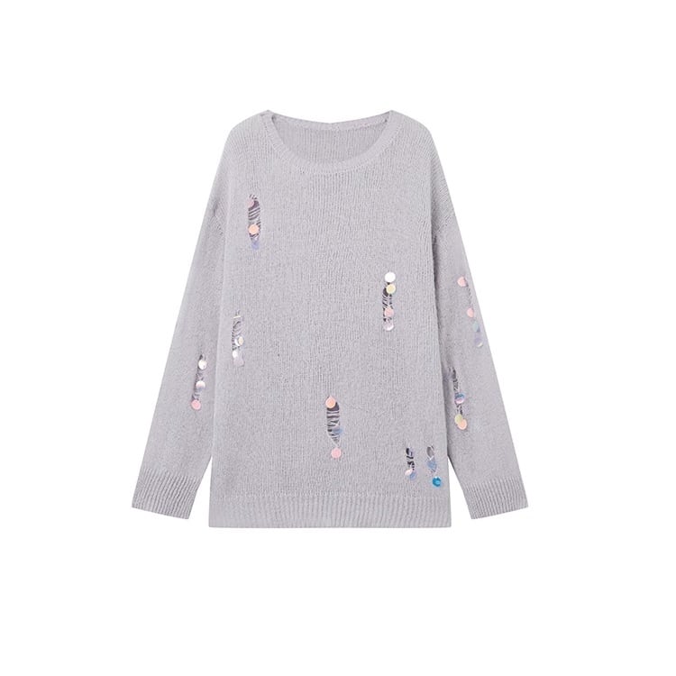 一枚で存在感たっぷりのhand-sewn sequin oversized mohair sweater。
